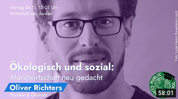 - 24. November 2020, 15:05 bis 16:05 Uhr: Online-Vortrag von Oliver Richters in der Public Climate School von Students for Future (Youtube).