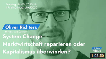 - 26. Mai 2020: „System Change – Marktwirtschaft reparieren oder Kapitalismus überwinden?“ Vortrag von Oliver Richters bei der Public Climate School per Videokonferenz.
